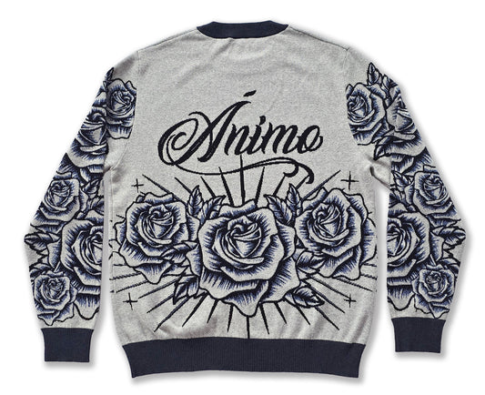 Ánimo con Roses (Blue Black Pen & Ink Style) - Unisex Knit Sweater