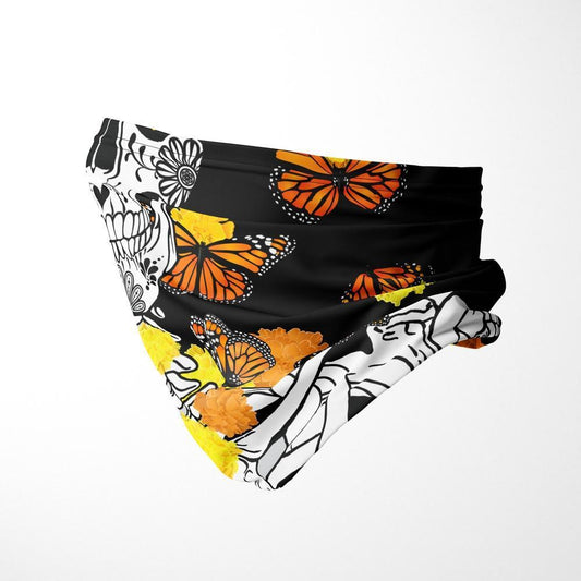 Día de los Muertos Skeleton wrapped in Cempasúchil - Unisex Face Mask Neck Gaiter