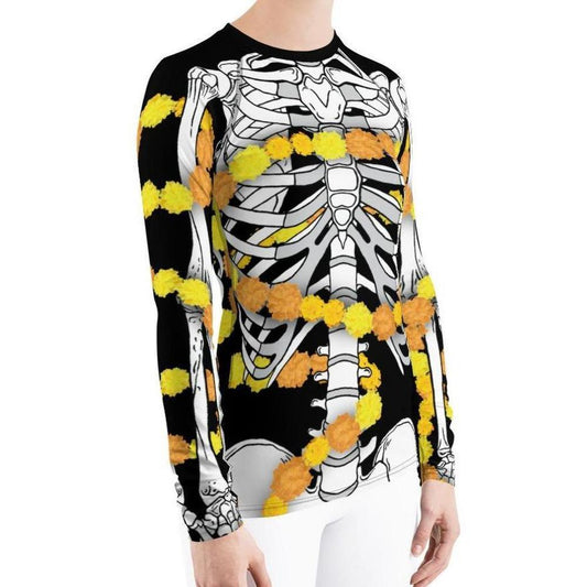 Día de los Muertos Skeleton wrapped in Cempasúchil - Women's Rash Guard Top