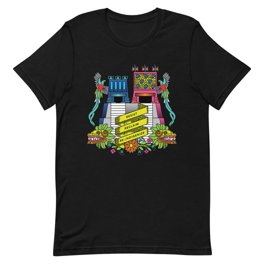 Resist, Reclaim, Re-Indigenize (Templo Mayor) - Bright Colors Unisex T-Shirt