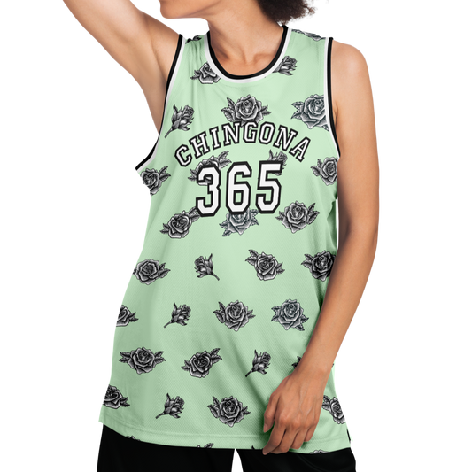 Chingona 365 with Roses - Soft Mint Basketball Jersey