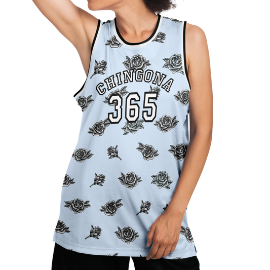 Chingona 365 with Roses - Baby Blue Basketball Jersey