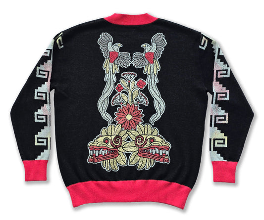 Quetzal y Quetzalcoatl con Flor - Unisex Knit Cardigan