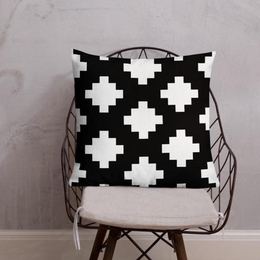 Black & White Mexica Pattern (with Gold Chimalli) - Premium Pillow (3 sizes)