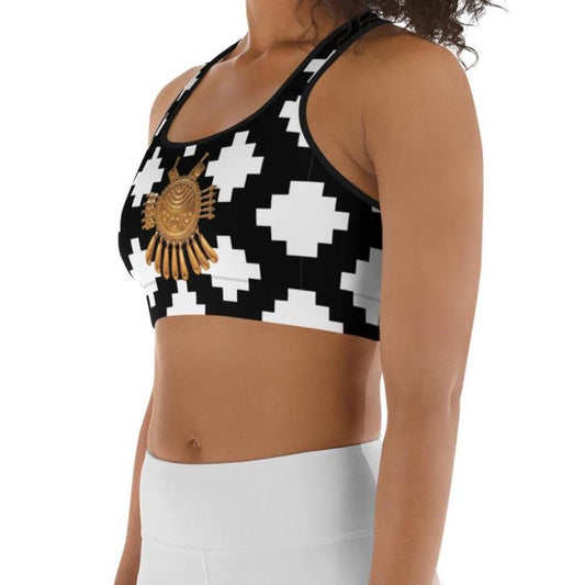 Black & White Mexica Pattern (with Gold Chimalli) - Sports bra