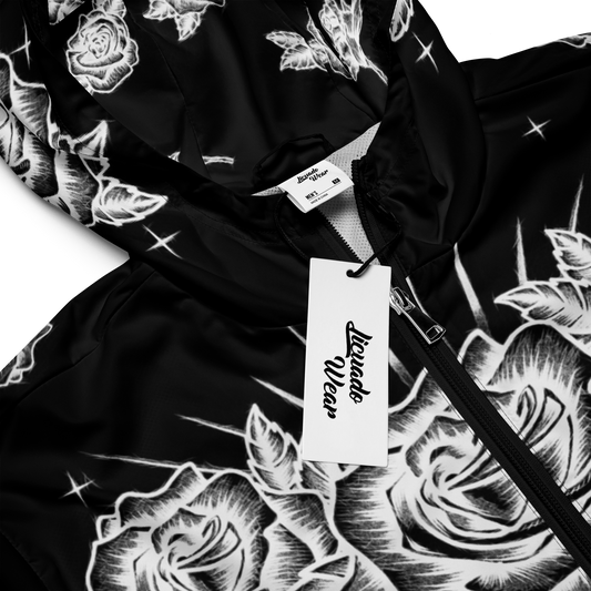 Black and White, Chicano Pen Ink Style Roses - Unisex Waterproof Windbreaker Jacket