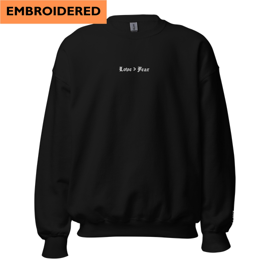 Love Is Greater Than Fear - Embroidered Unisex Sweatshirt