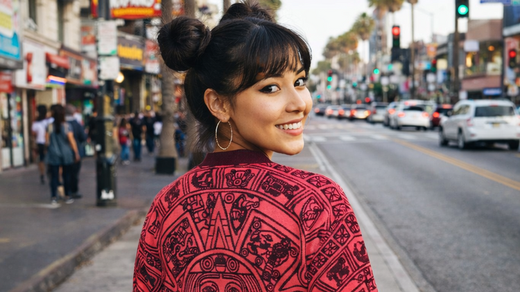 Mexica / Azteca Calendar (Maroon & Pink, Nocheztli) - Unisex Knit Cardigan