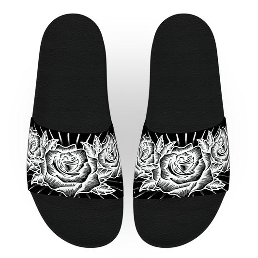 Black and White, Chicano Pen Ink Style Roses - Unisex Slide