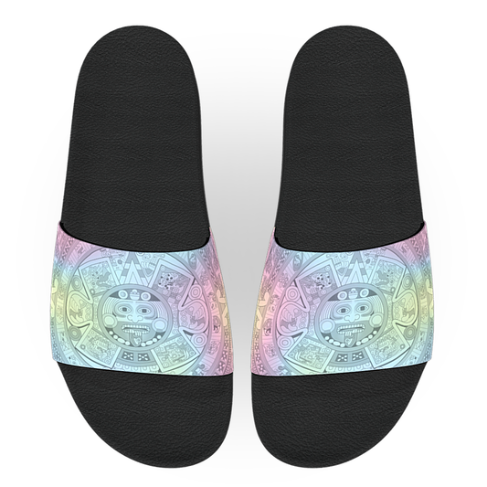 Pastel Aztec Calendar (Black Base) - Unisex Slide Sandal