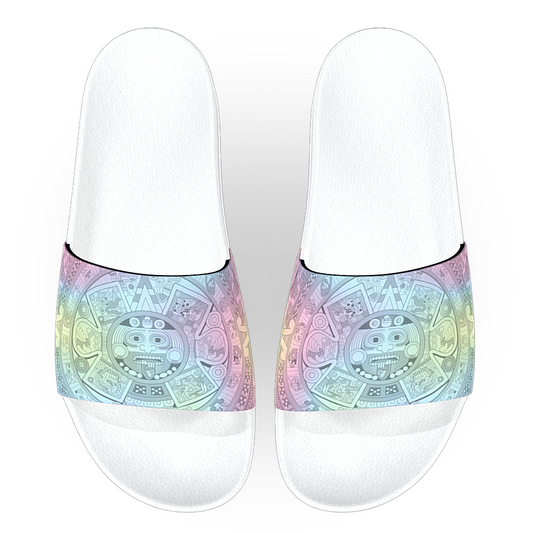 Pastel Aztec Calendar (White Base) - Unisex Slide Sandal