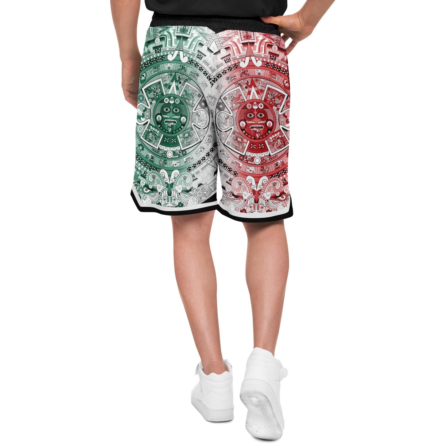 Aztec Calendar (Mexico flag colors) 2025 - Unisex Basketball Shorts