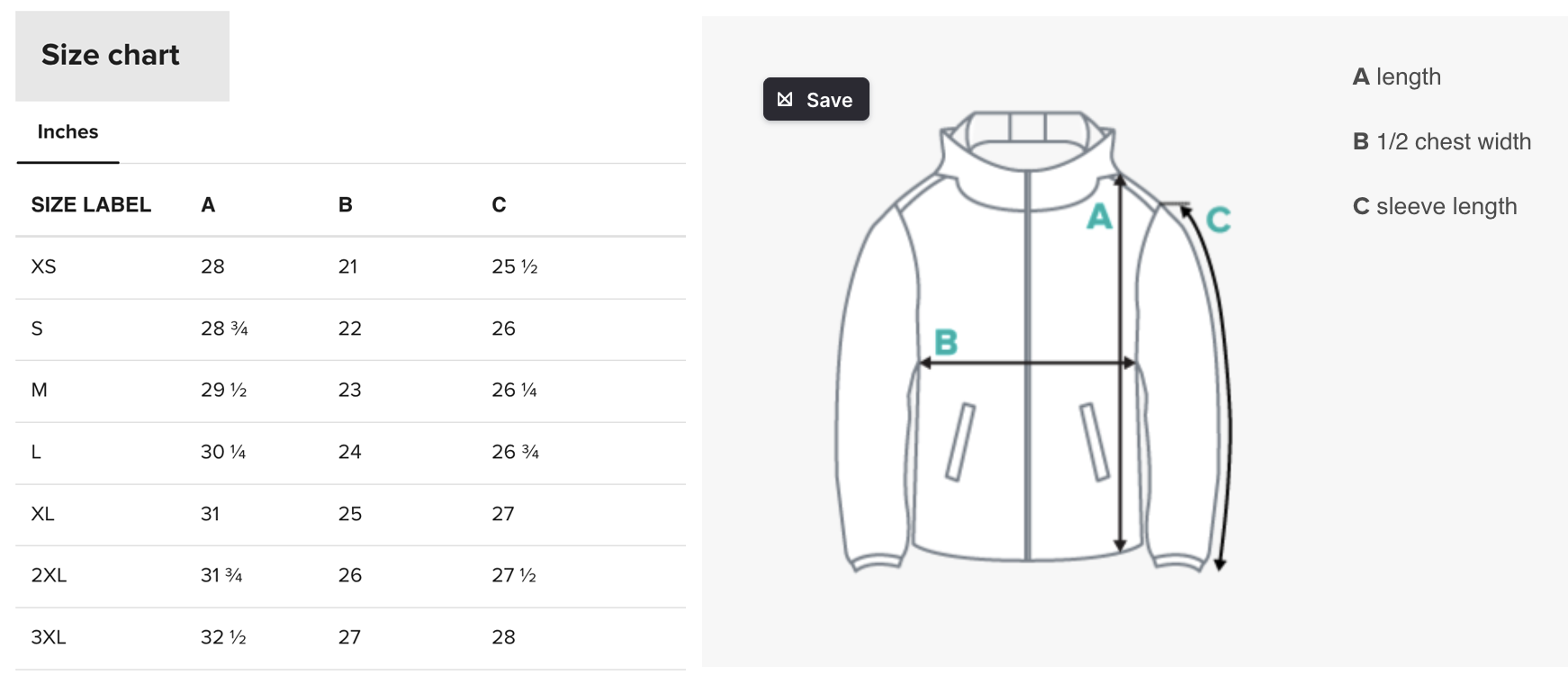 There is no stretch to this material. To ensure fit and zipper closure double check the measurement labeled "B" (chest width also equals hip width). Especially if you want the jacket to zip up over your hips.
