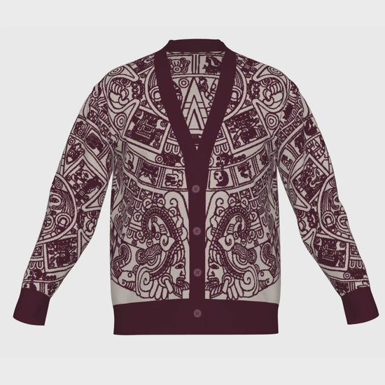Mexica / Azteca Calendar (Maroon & Tan) - Unisex Knit Cardigan