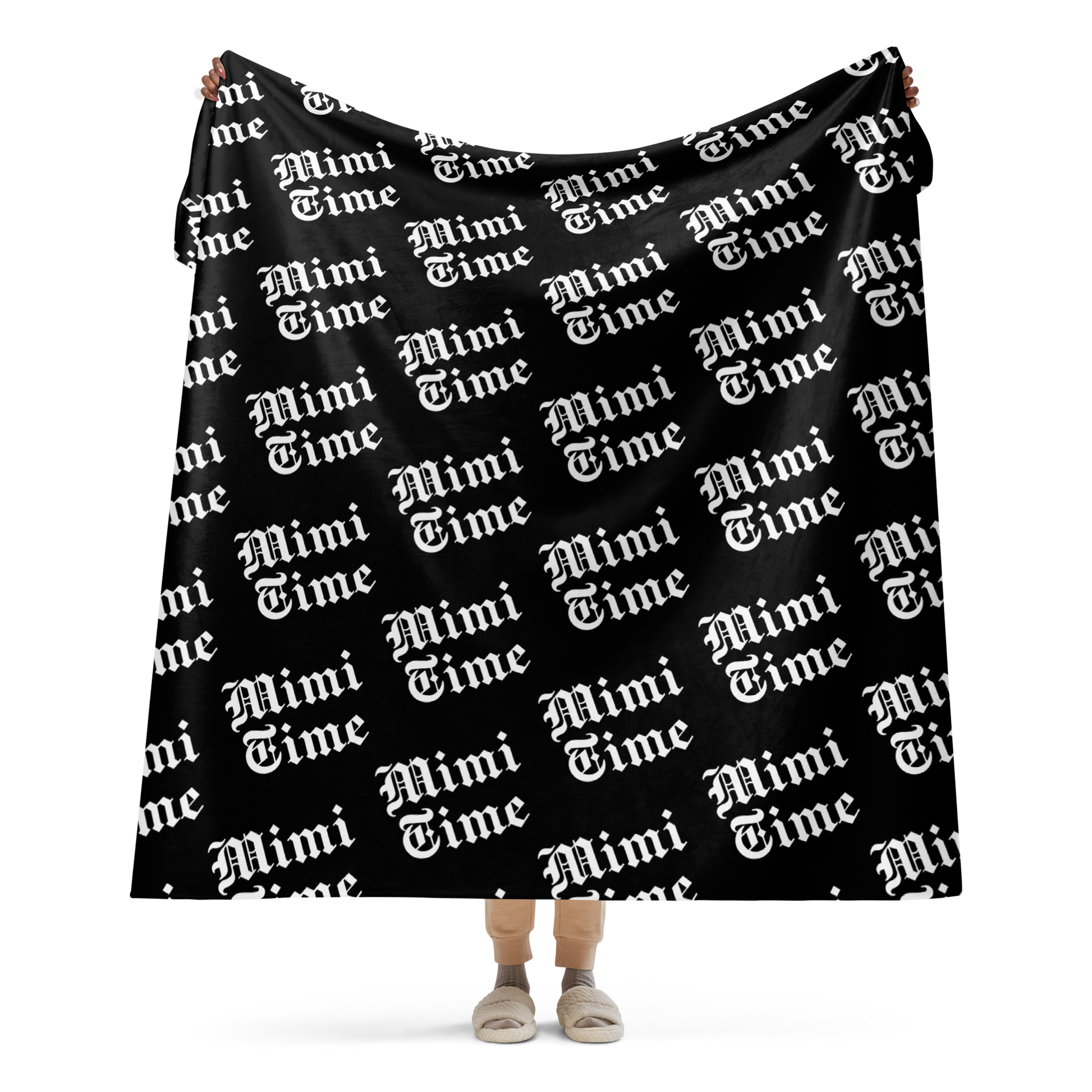 Sink into pure comfort with our “Mimi Time” sherpa blanket, designed with an all over black background and crisp white Old English lettering. Beyond its cloud-soft feel, this blanket carries a familiar warmth that hits right at home.